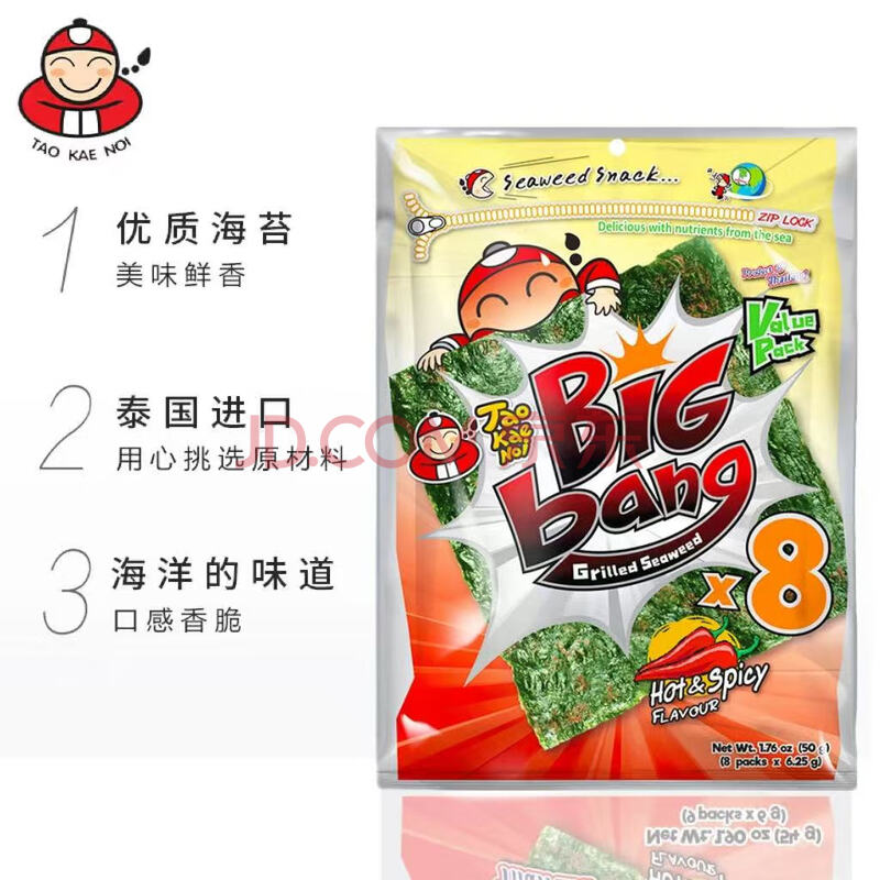 商品相册:老板仔泰国进口 烤海苔大片海苔 香脆紫菜烤海苔紫菜零食 香辣味50g第