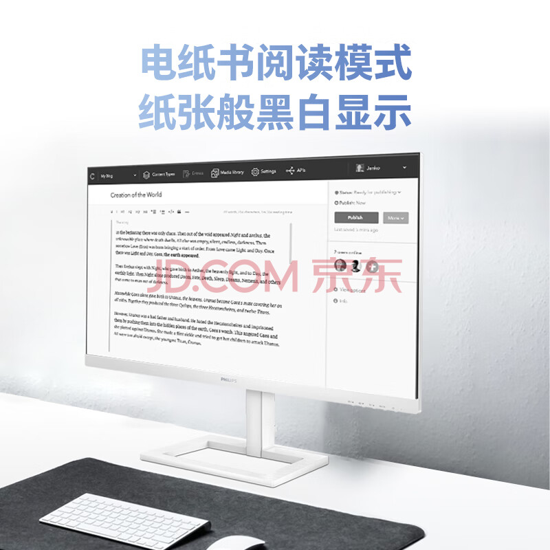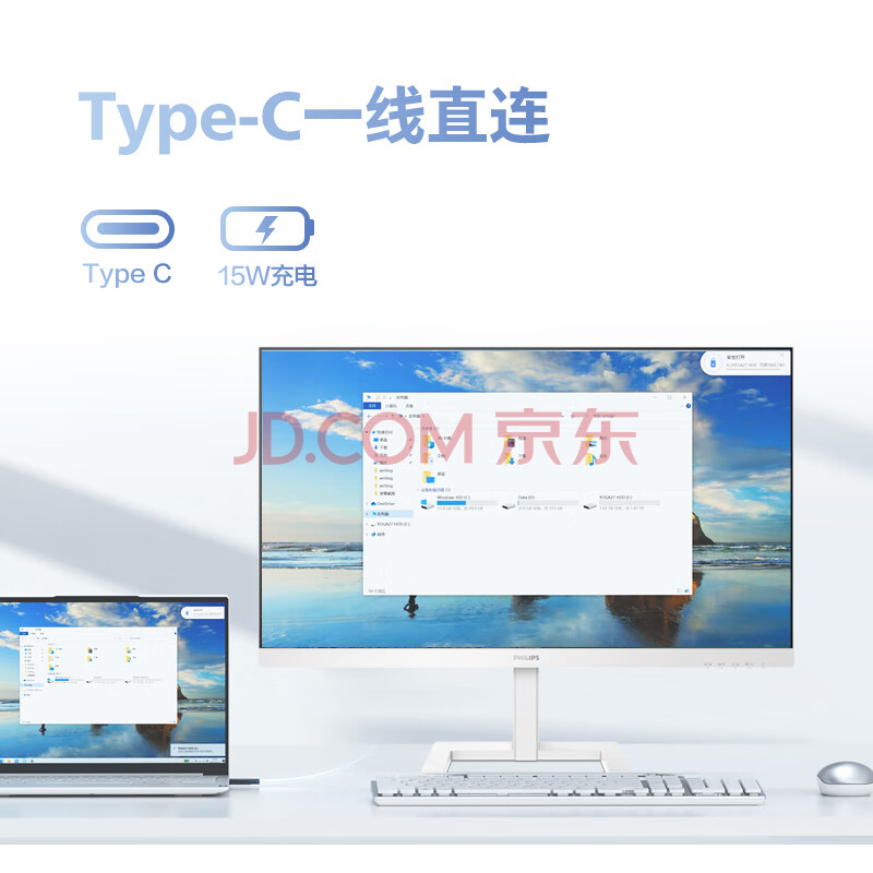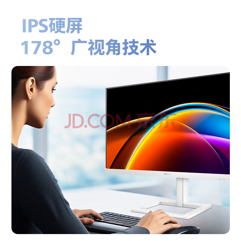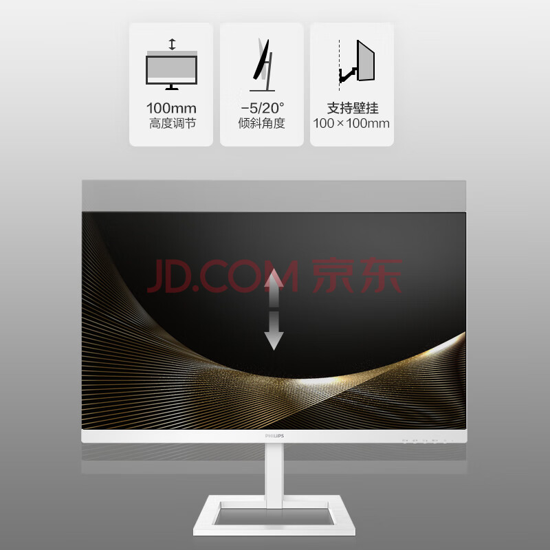 商品相册:飞利浦 23.8英寸IPS Type-C投屏75hz 升降支架可壁挂 游戏模式 办公电脑显示器 拼接显示屏 白色243E1EW第