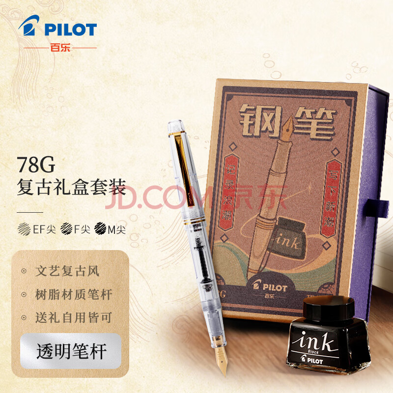 商品相册:【新春礼物】百乐(PILOT)78G钢笔配墨水 礼物复古礼盒装 商务办公送礼 男女生日礼物学生练字签字笔 FP-78G 透明色F尖第