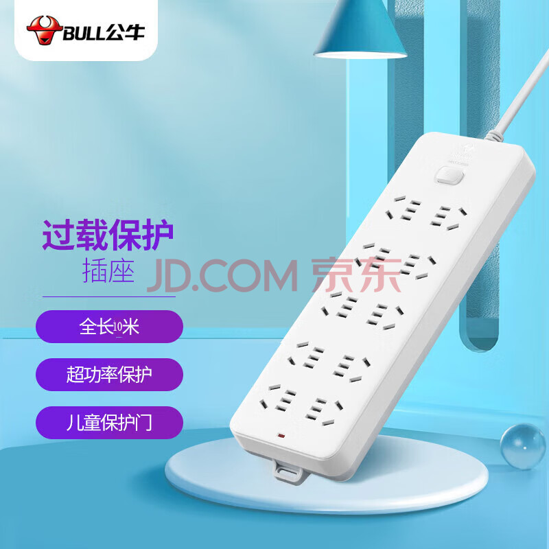 商品相册:公牛(BULL)GN-218 5米 10位总控 超功率过载保护 带开关保护门 电源接线板插排插线板插板第