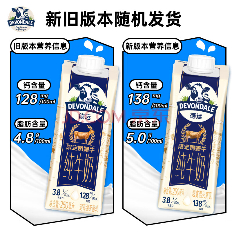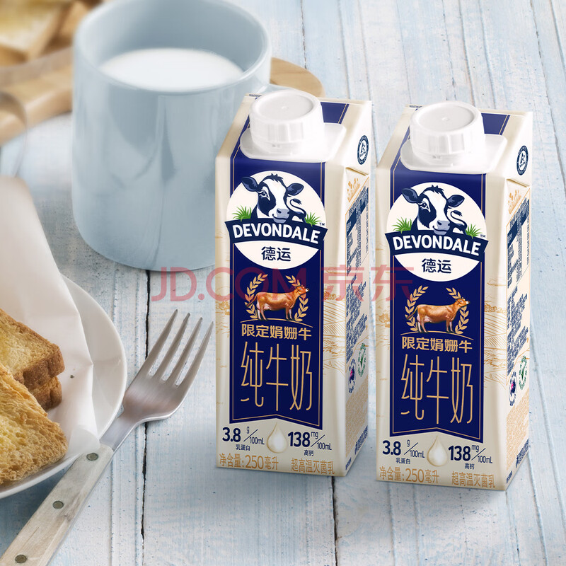 商品相册:德运(Devondale)娟姗全脂纯牛奶3.8g蛋白质250ml*18盒/箱高钙澳洲原装进口送礼第