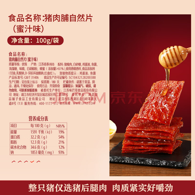 商品相册:良品铺子猪肉脯自然片蜜汁味100g 靖江风味猪肉干肉脯肉类零食休闲网红第