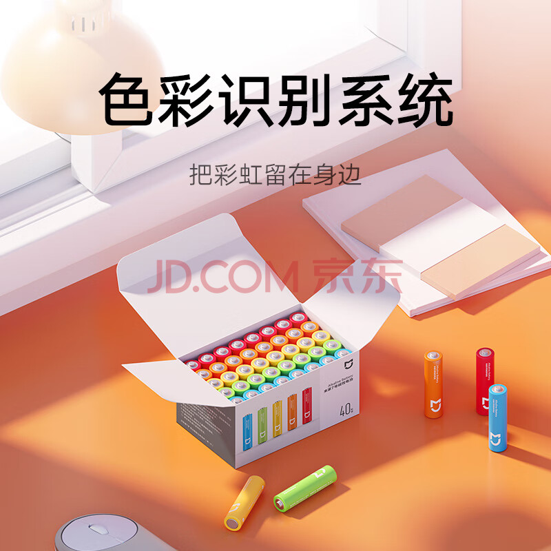 商品相册:米家7号碱性电池 40粒 高性价比 彩虹色外观 大数量包装第