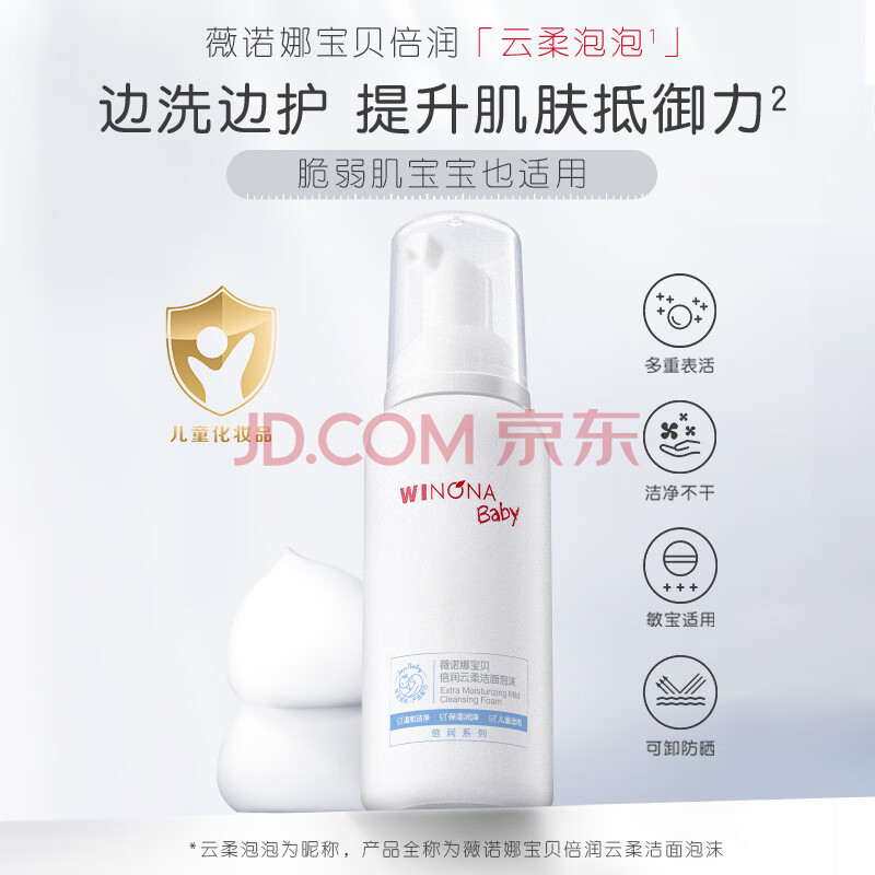 商品相册:薇诺娜宝贝倍润云柔洁面泡沫 3-6-12岁青少年儿童专用氨基酸温和洗面奶100ml第