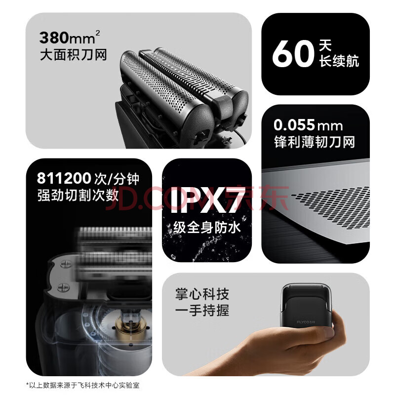 商品相册:飞科(FLYCO)FS685 电动剃须刀 超长续航60天 1小时快充 三刀头 小巧便携 干湿双剃 往复式刮胡须刀【配礼袋】第