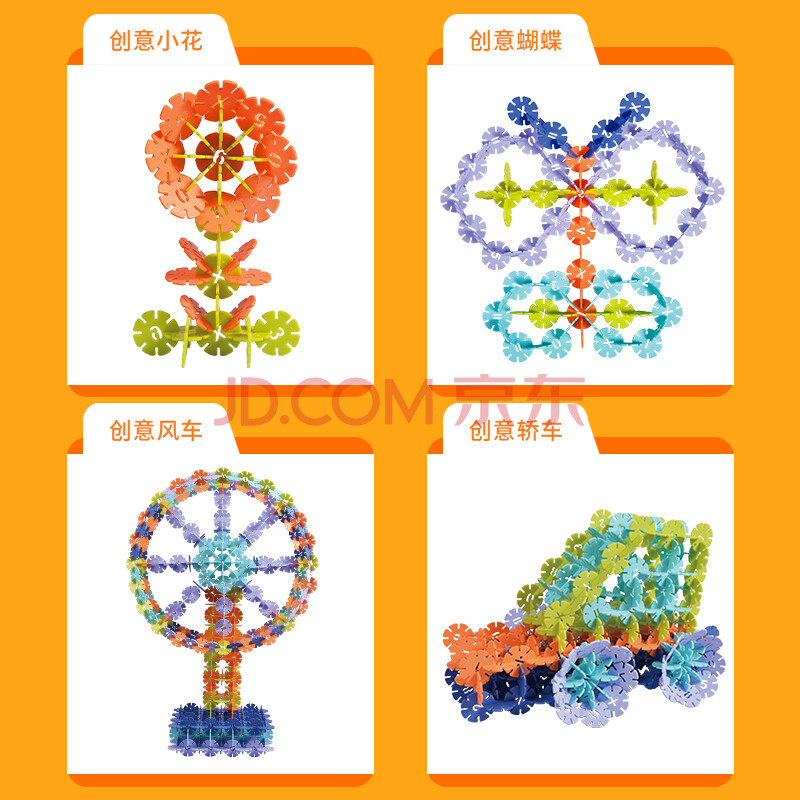商品相册:得力(deli)儿童雪花片积木男女孩开学玩具插大号100片加厚开学生日礼物74552第1张/共4