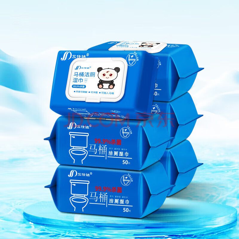 商品相册:三仕达 马桶杀菌湿巾50片*6包 99.9%杀菌便圈清洁洁厕湿巾 可冲马桶湿巾第