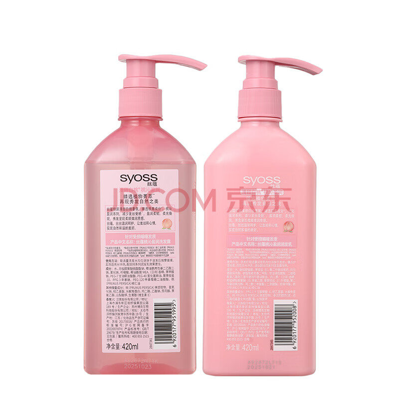 商品相册:丝蕴(syoss)桃沁盈润洗护发套装白桃香氛清爽无硅油洗发水(洗420ml+润420ml)第