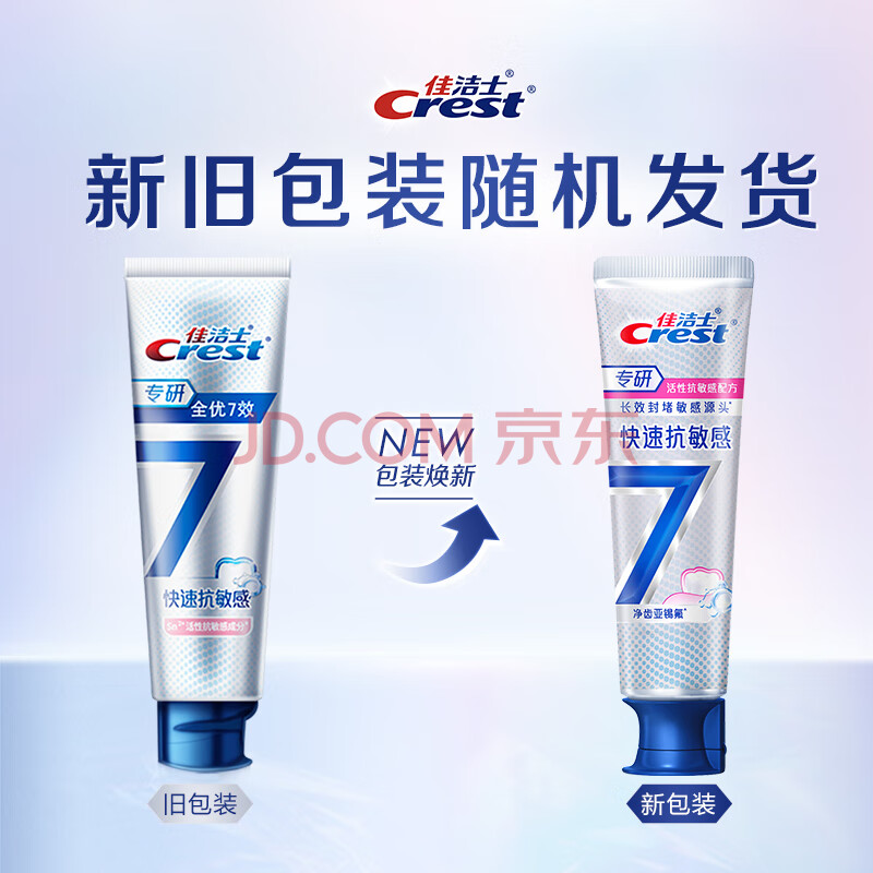 商品相册:佳洁士专研快速抗敏牙膏根源解决牙齿敏感120g京东自营新老包装混发第