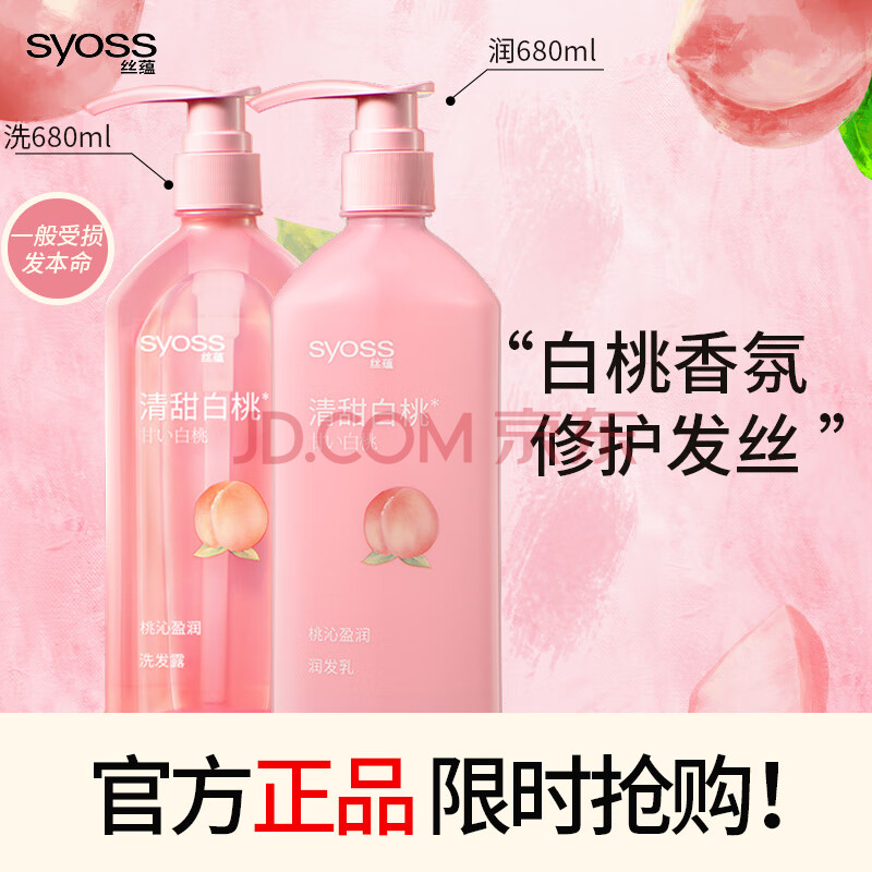 商品相册:丝蕴(syoss)桃沁盈润洗护发套装白桃香氛清爽无硅油洗发水(洗680ml+润680ml)第
