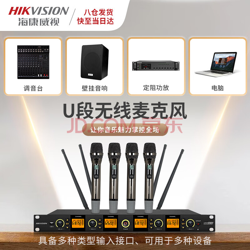商品相册:海康威视(HIKVISION)手持一拖四无线麦克风UHF话筒无障碍百米传输防啸叫专业舞台唱歌家用会议演讲培训广播婚庆晚会KTV第