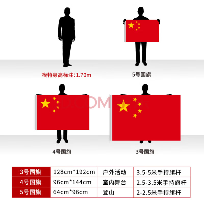 商品相册:优必利 中国国旗防水耐用3号国旗五星红旗(128*192cm) 户外旗帜 8313第