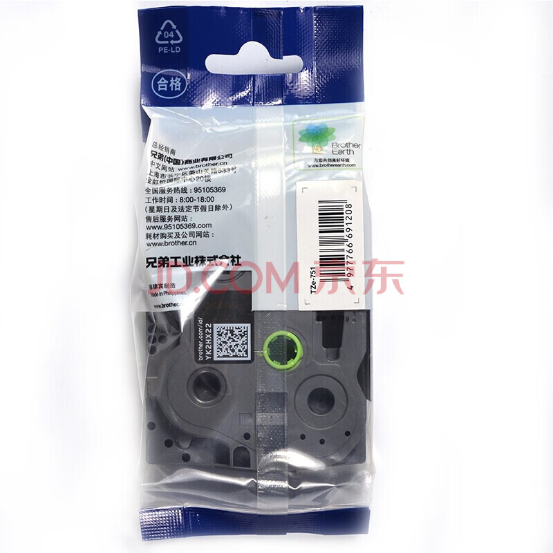 商品相册:brother兄弟(brother)TZe-751 绿底/黑字24mm不干胶打印纸标签色带【ZY】第