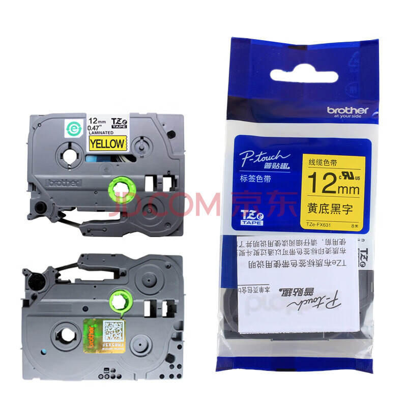 商品相册:兄弟(brother)TZe-FX631 黄底/黑字(线缆标签)12mm不干胶打印纸标签色带【ZY】第