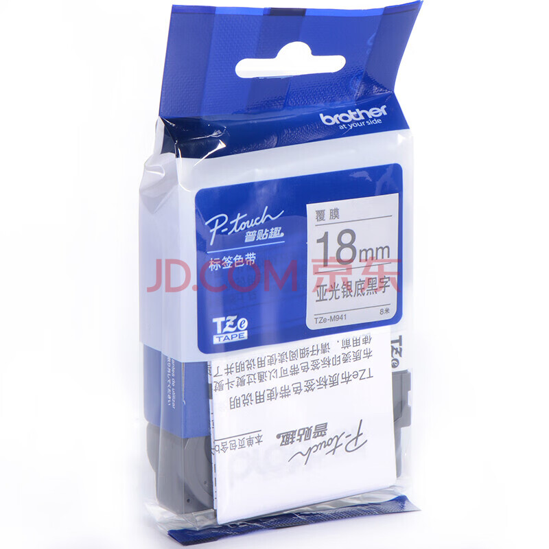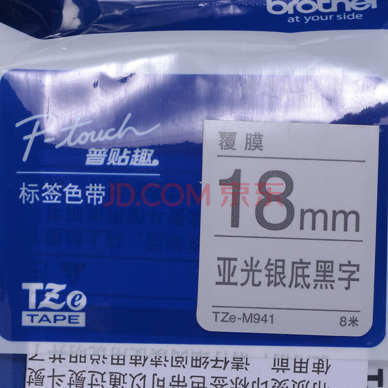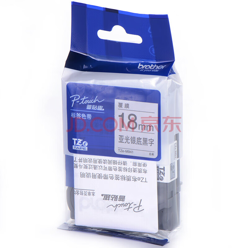 商品相册:兄弟(brother)TZe-M941 亚光银底/黑字18mm不干胶打印纸标签色带【ZY】第
