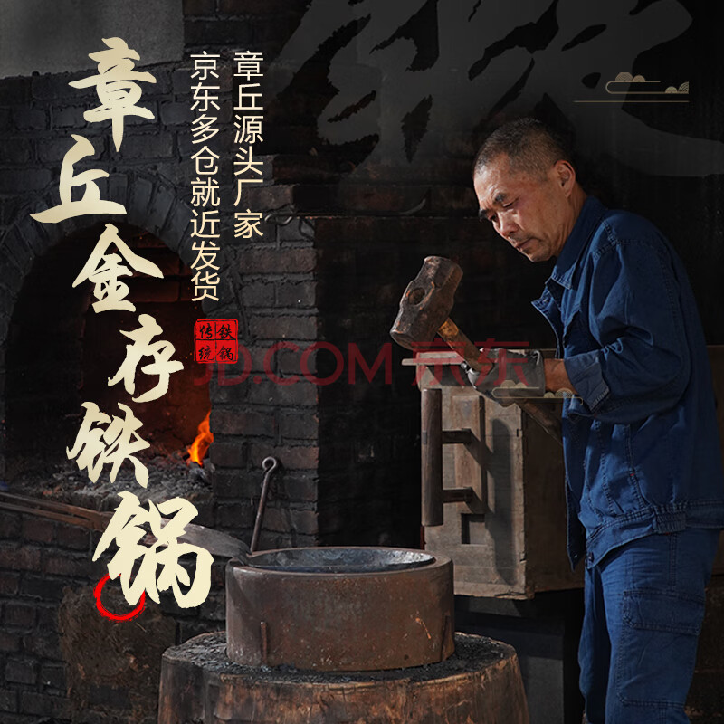 商品相册:金存章丘炒锅铁锅炒菜锅无涂层老式熟铁锅 镜面轻便款木把34cm已开锅第