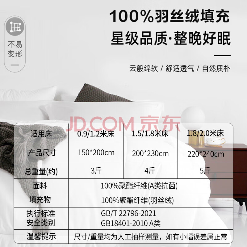 商品相册:源生活 被子春秋 A类抗菌酒店被褥可水洗四季被 被芯约5斤220x240cm白色第