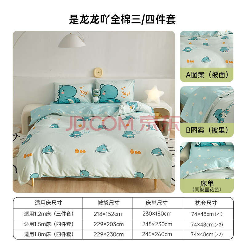 商品相册:多喜爱家纺全棉床上四件套 双人纯棉被套床单床上用品四件套1.8米床 229*230cm第