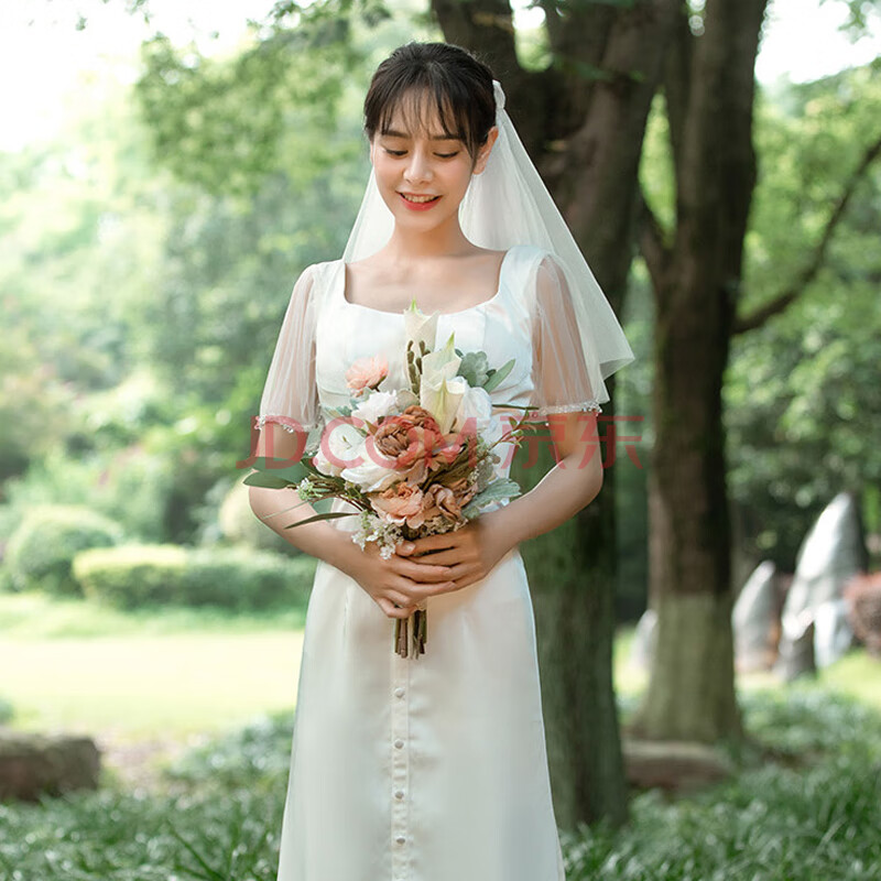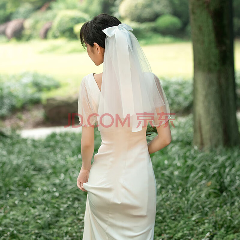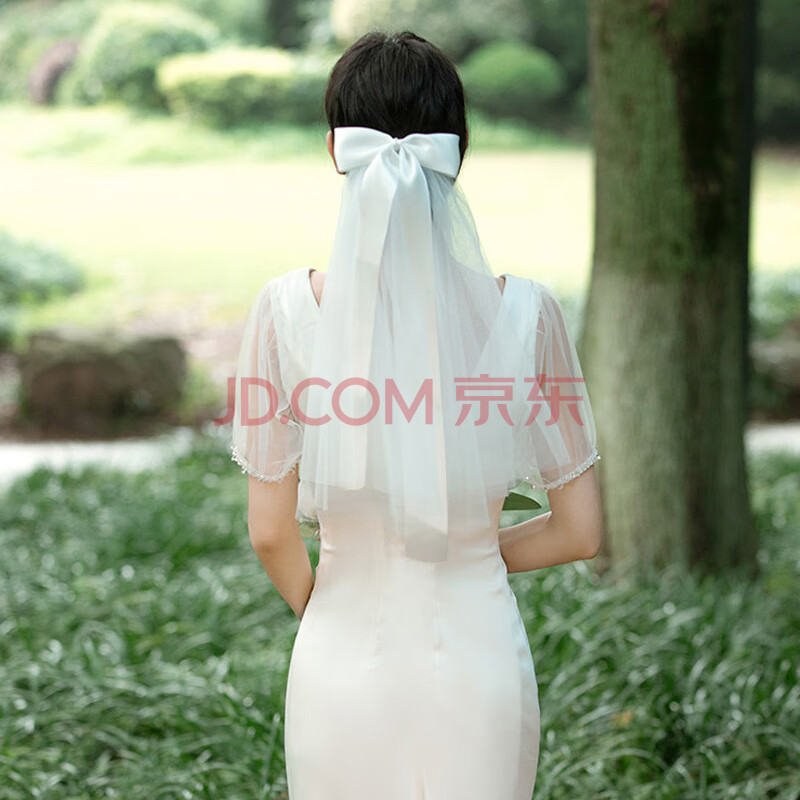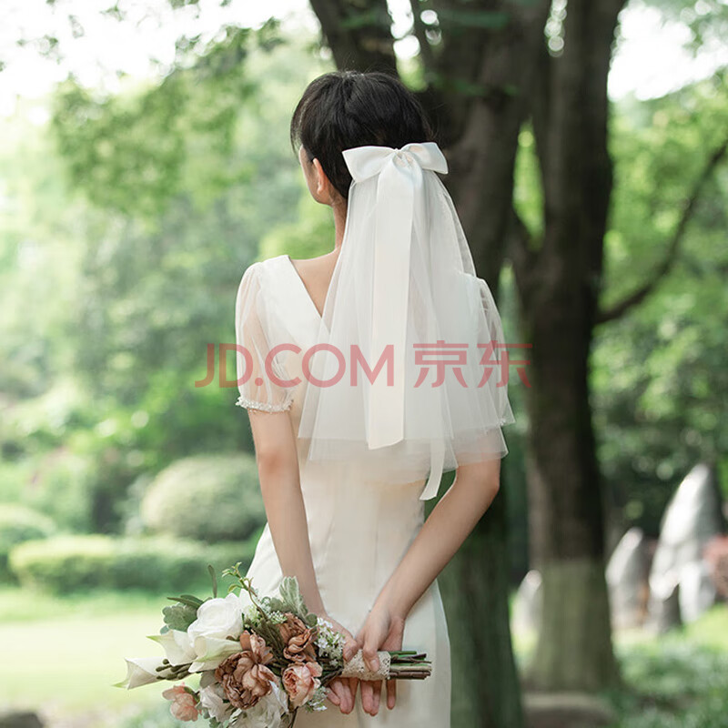 商品相册:缔晶 新娘头纱求婚领证结婚登记婚纱头饰森系蝴蝶结白色素纱双层设计网红拍照道具法式小头纱第