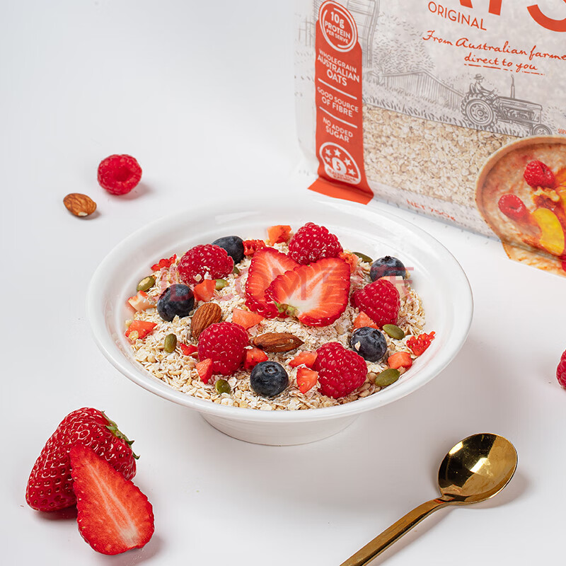 商品相册:红色拖拉机澳洲进口即食免煮 冲饮谷物 早餐麦片蛋白燕麦片750g第