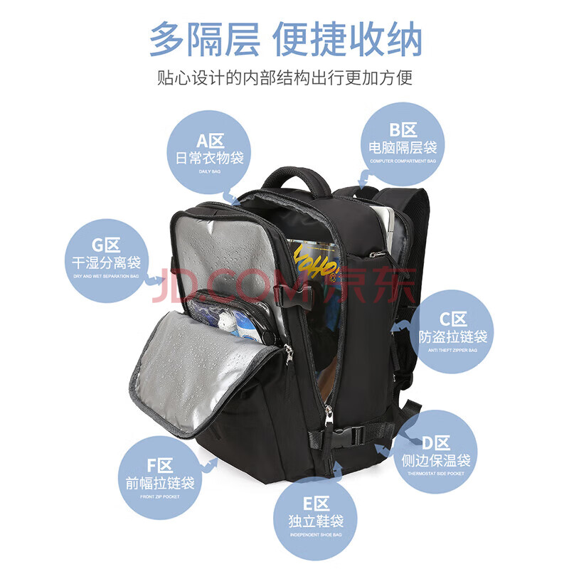 商品相册:Landcase 背包旅行包女超大容量双肩包男行李包多功能电脑包5162黑色大号第