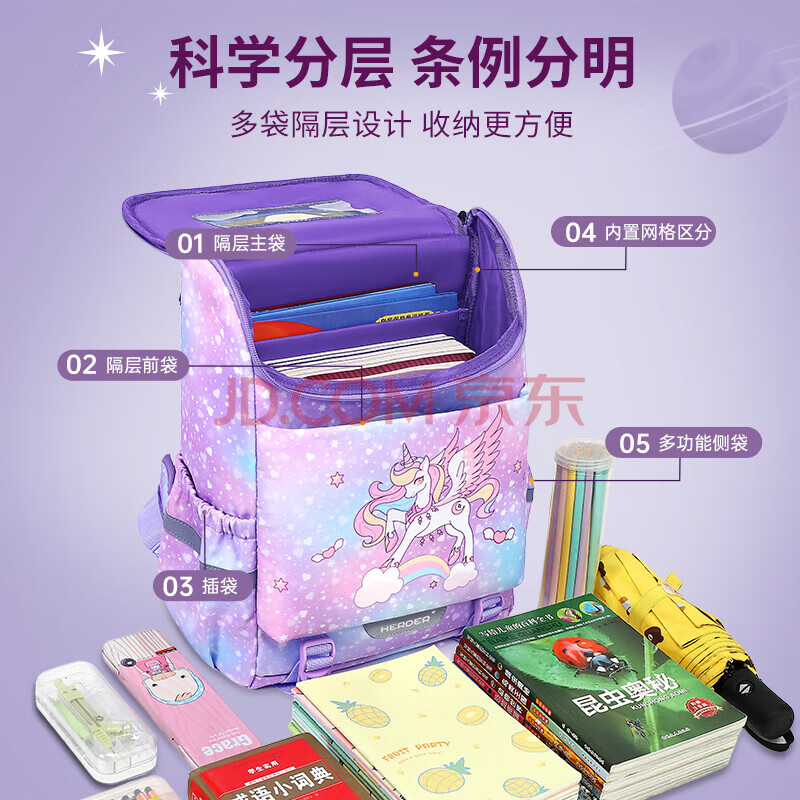商品相册:赫登尔书包女小学生一二三到六年级减负护脊女孩女童轻盈透气儿童书包第