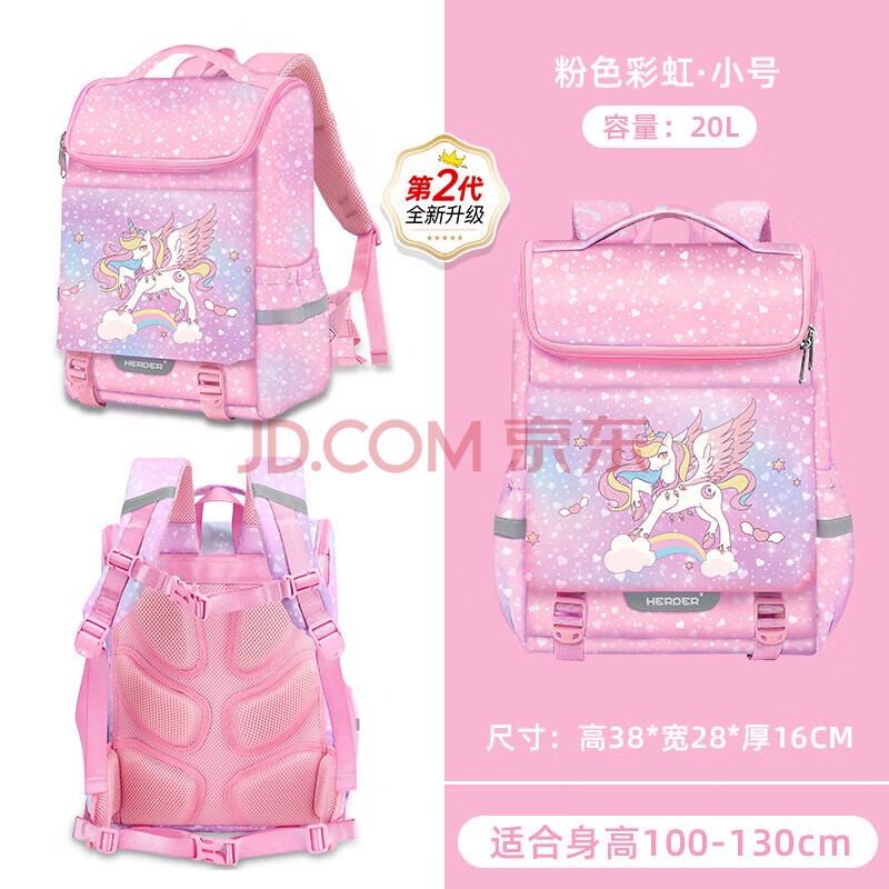 商品相册:赫登尔书包女小学生一二三到六年级减负护脊女孩女童书包轻盈透气独角兽第