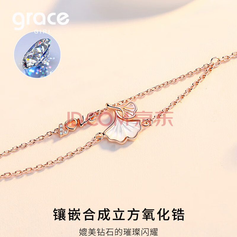 商品相册:Grace Girl三生有杏手链女玫瑰金色时尚珠宝首饰纪念日生日礼物送女友第
