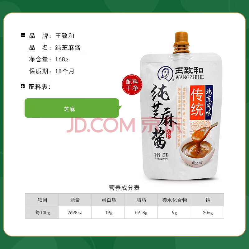 商品相册:王致和 纯芝麻酱168g 凉拌面热干面酱火锅蘸料 第
