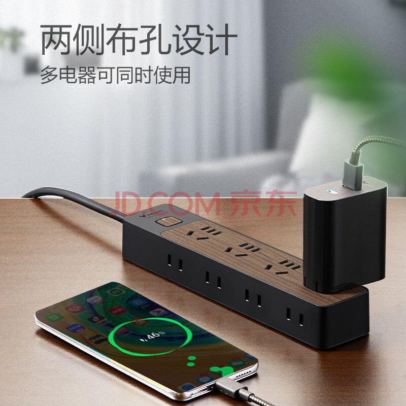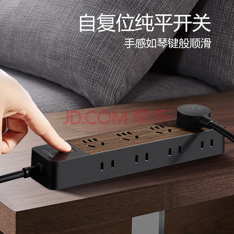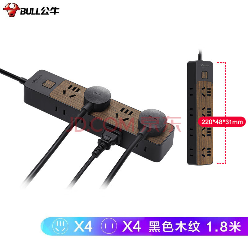 商品相册:公牛(BULL)插座/插线板/插排/排插/接线板/拖线板 8位总控1.8米 黑色木纹GN-R1440第