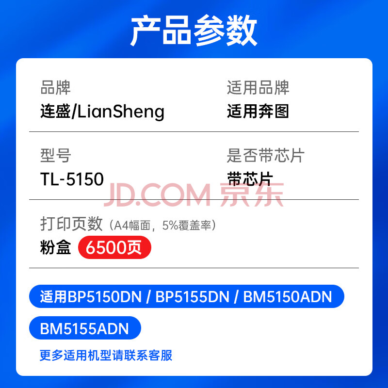 商品相册:连盛TL-5150粉盒 适用奔图PANTUM BP5155DN BP5150DN BM5150ADN BM5155ADN打印机TL-5150H大容量硒鼓墨盒墨粉盒第