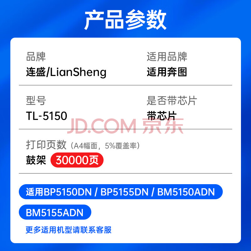 商品相册:连盛TL-5150粉盒 适用奔图PANTUM BP5155DN 5150DN BM5150ADN 5155ADN打印机 DL-5150鼓架/感光鼓第