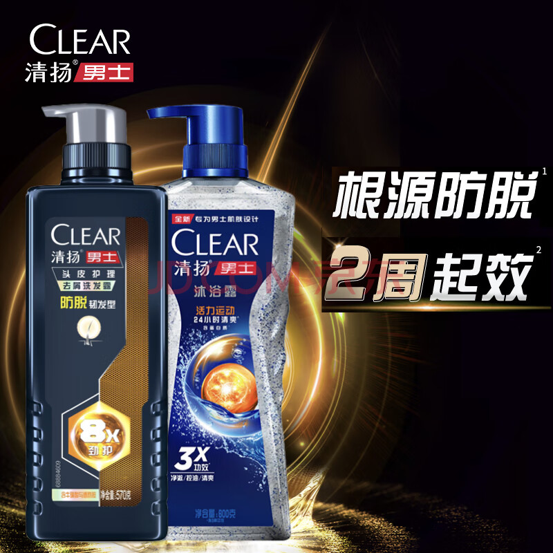 商品相册:清扬男士劲能瓶洗发水 防脱韧发570g+沐浴露600g京东自营洗发沐浴套装第