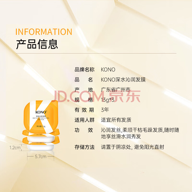 商品相册:KONO卡厘深水沁润发膜滋养修护改善毛躁护理发膜 13g*3第