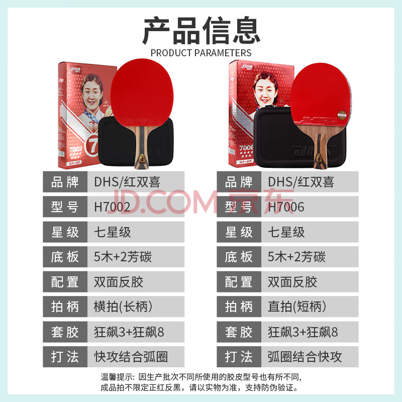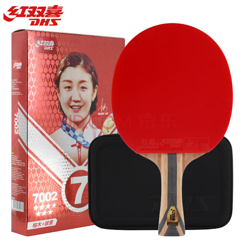 商品相册:红双喜(DHS)乒乓球拍七星级横拍H7002柚木面材+碳素附拍包+乒乓球第