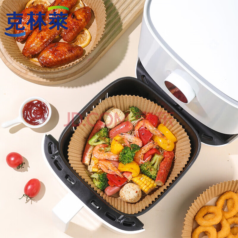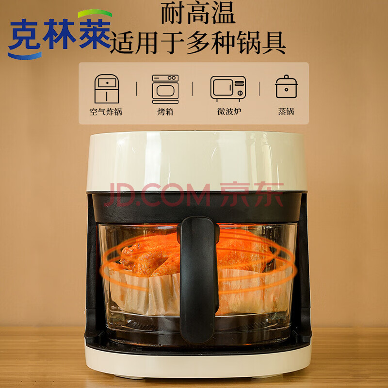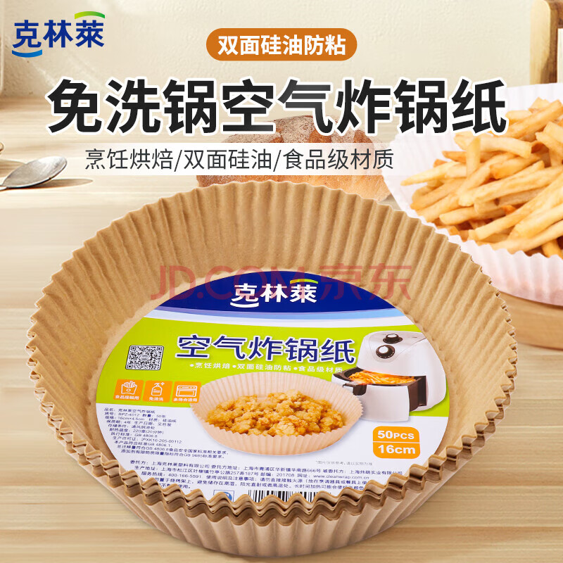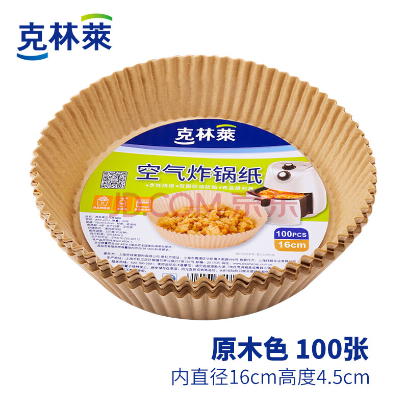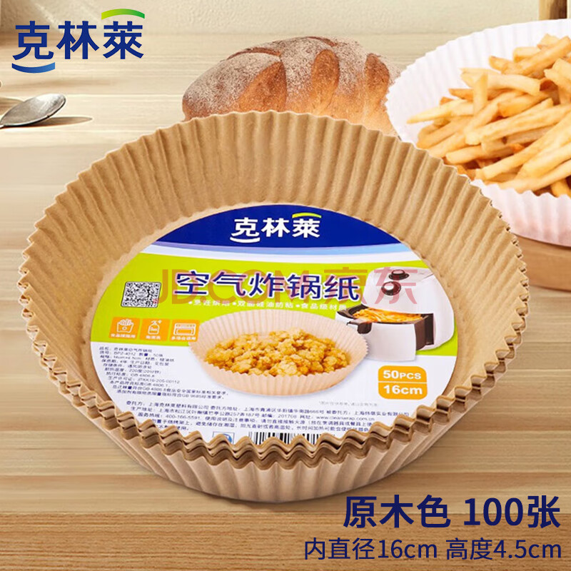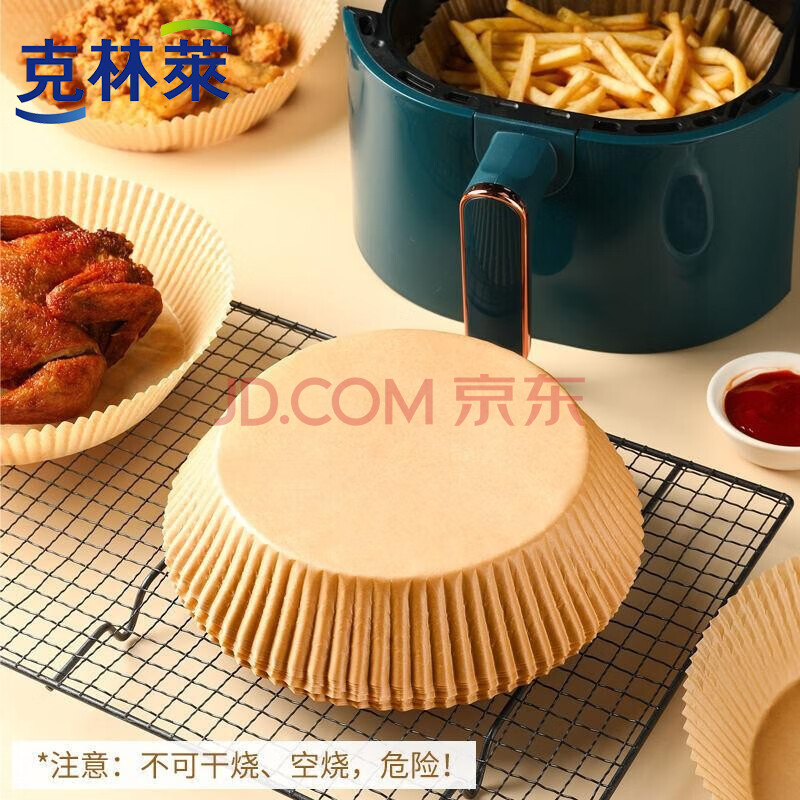 商品相册:克林莱空气炸锅纸3L以上适用圆形家用吸油一次性烘焙硅油纸盘100张第