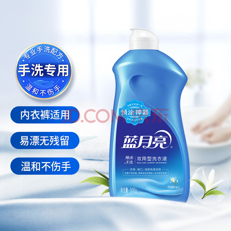 商品相册:蓝月亮 手洗专用洗衣液 风清白兰 500g/翻盖瓶 温和易漂 预涂手洗双用第