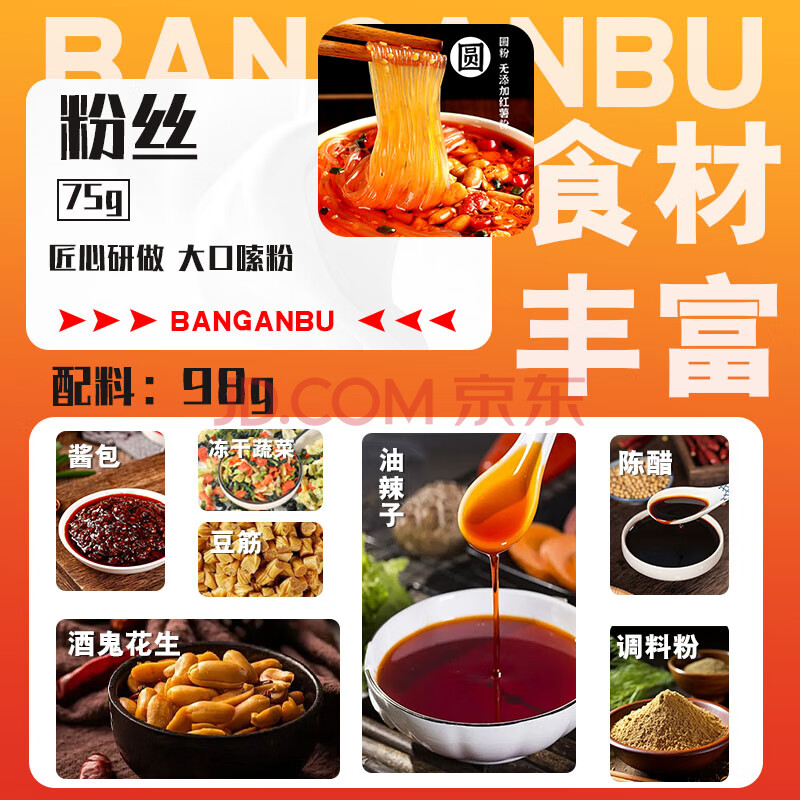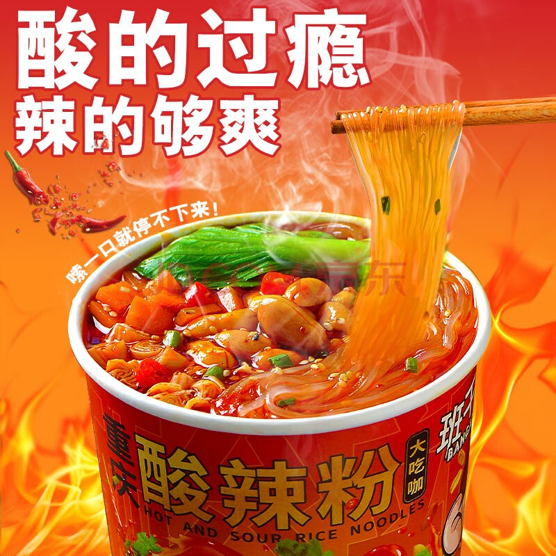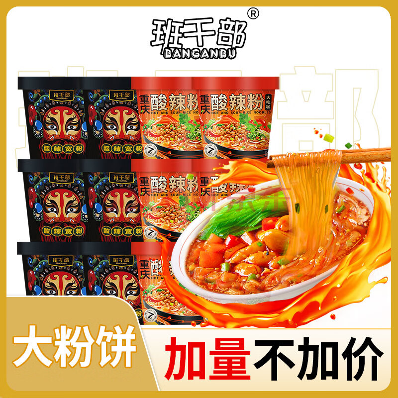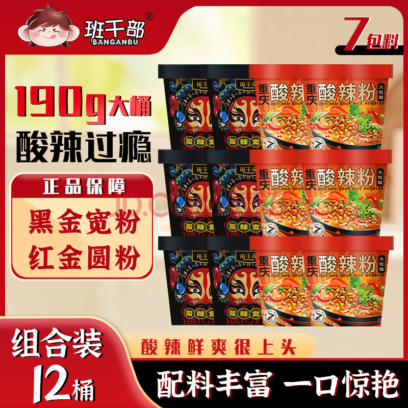 商品相册:班干部(BANGANBU) 酸辣粉黑金宽粉+圆粉190克*12桶装冲泡方便粉丝零食早餐宵夜零食第