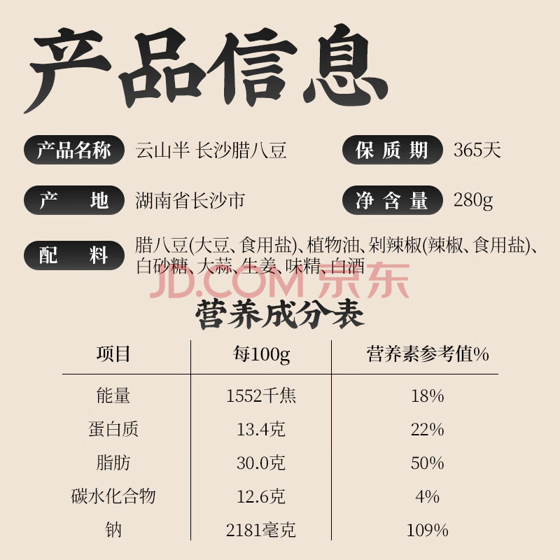 商品相册:云山半湖南特产香辣长沙腊八豆280g 下饭菜蒜香黄豆酱罐装熟食第