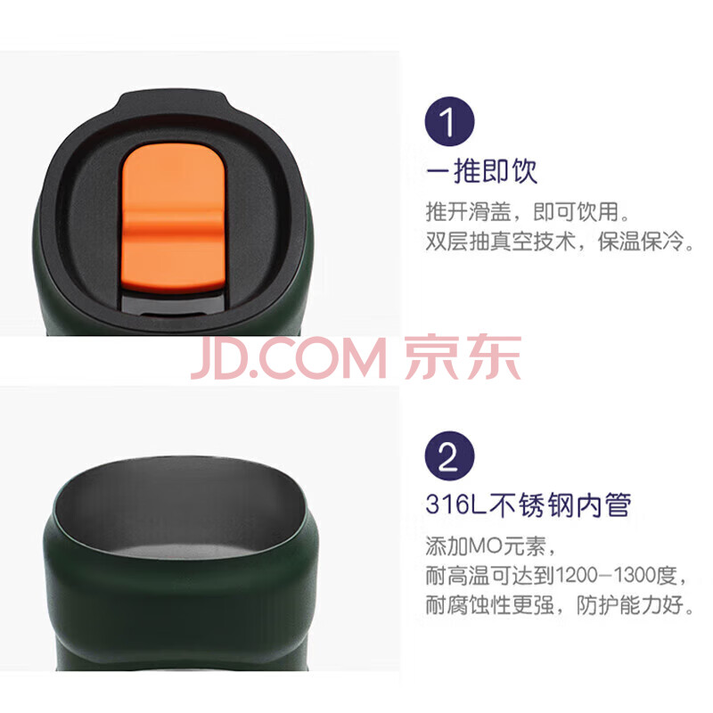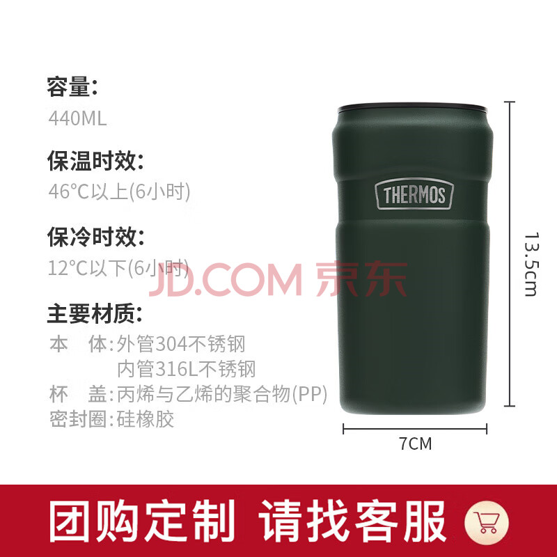 商品相册:膳魔师(THERMOS)440ml保温咖啡316钢男女学生保冷泡茶水杯子TSK2-400S AGR云杉绿第
