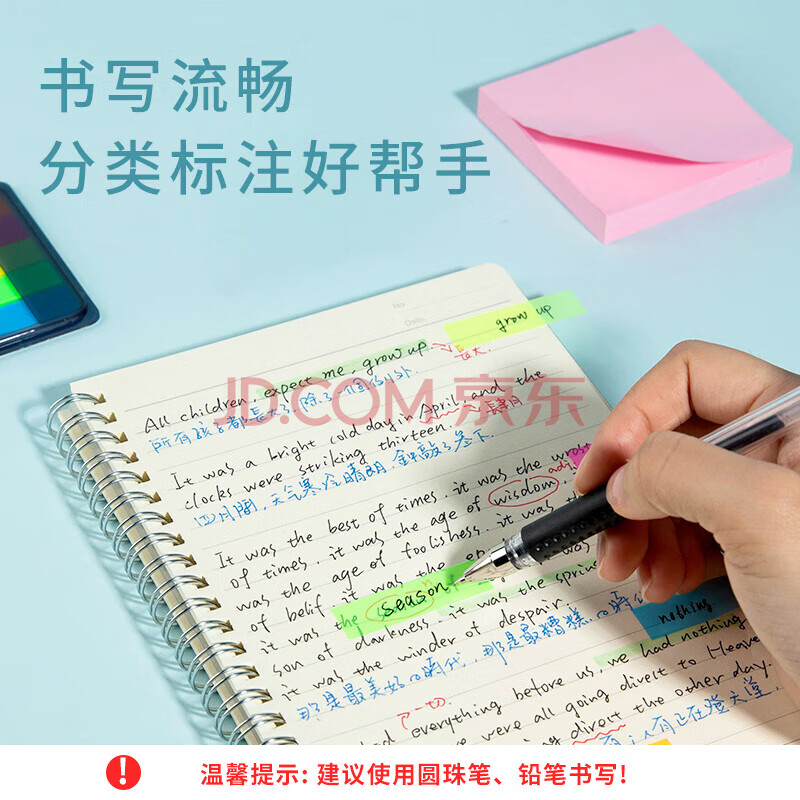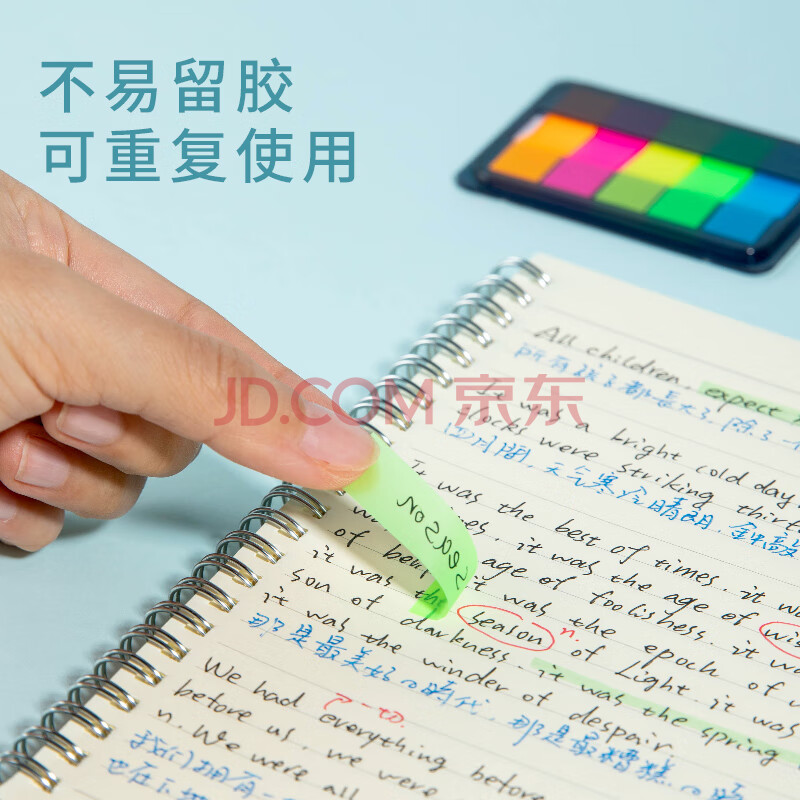 商品相册:齐心(COMIX)【热门商品】荧光膜索引标签贴 便签便利贴小条指示便签纸开学用品300张(44x12mm)20张*5色D7012EC第