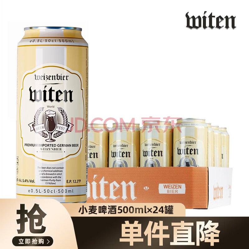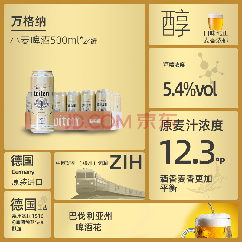 商品相册:万格纳小麦白啤酒 500ml*24罐 整箱 麦香浓郁 醉美开春 德国原装进口第