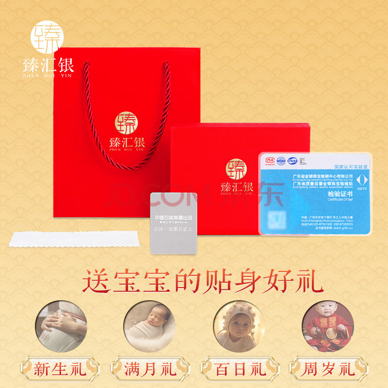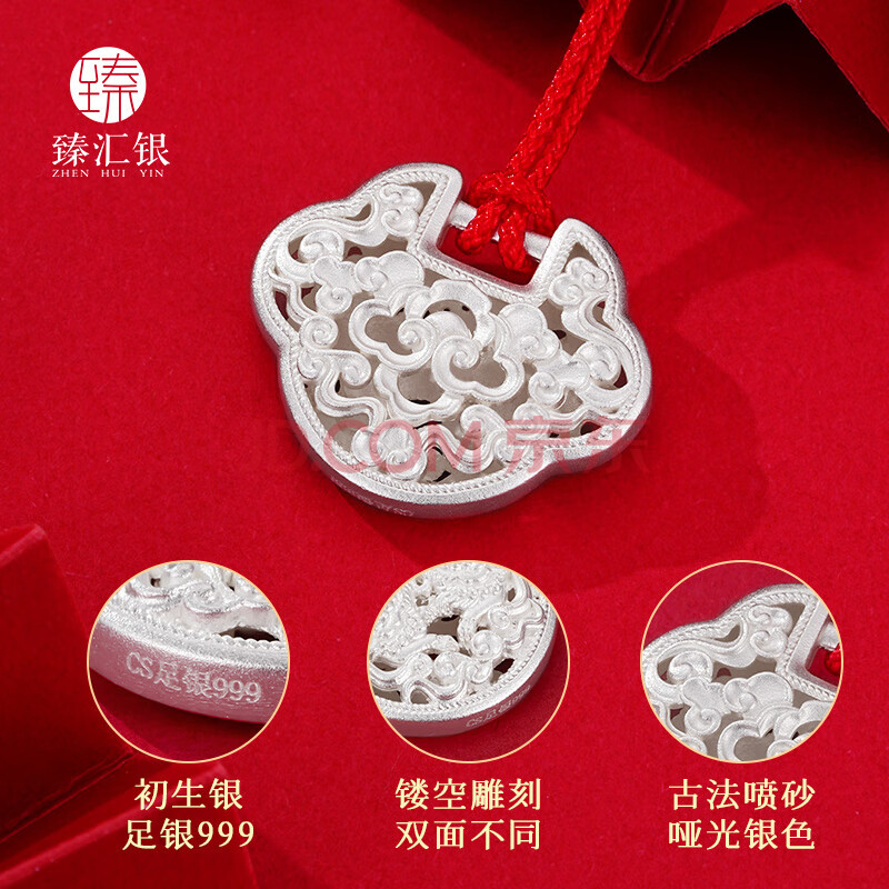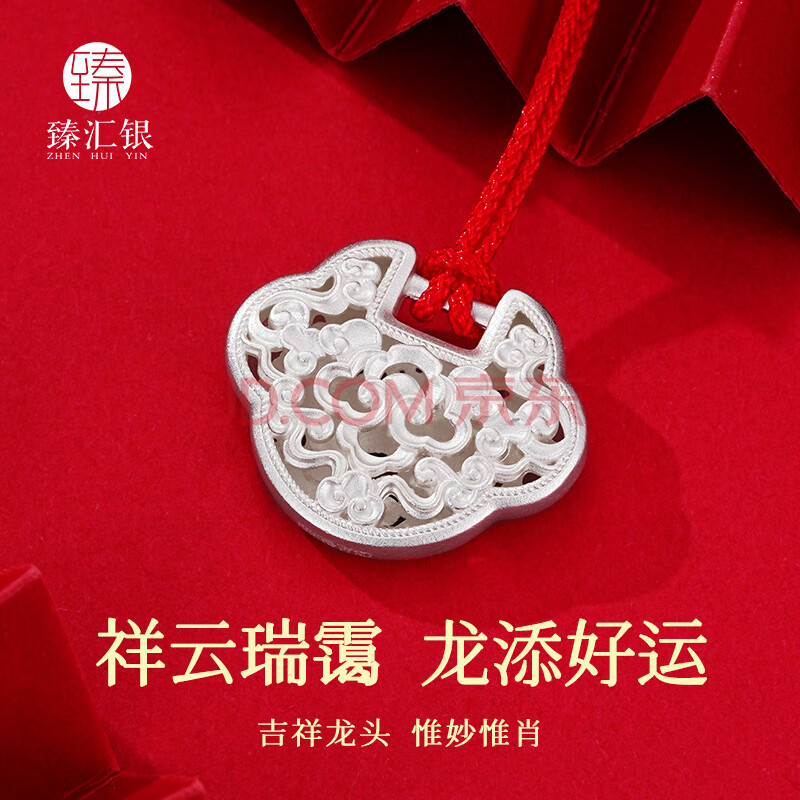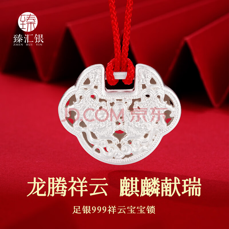 商品相册:臻汇银足银999祥云宝宝长命锁包满月周岁礼物儿童婴儿礼物约6.5g第