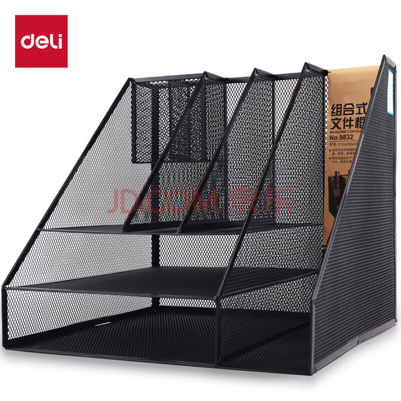商品相册:得力(deli)多功能金属网材组合式文件框栏 办公室桌面档案收纳盒多层资料置物架子 分层收纳 黑色9832第