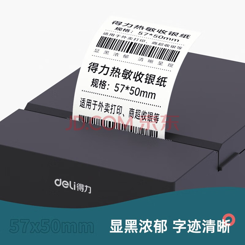 商品相册:得力(deli)57*50型17米*100卷 珊瑚海热敏收银纸 京东美团外卖餐饮小票纸 3141【适配58mm机器 5801P等】第