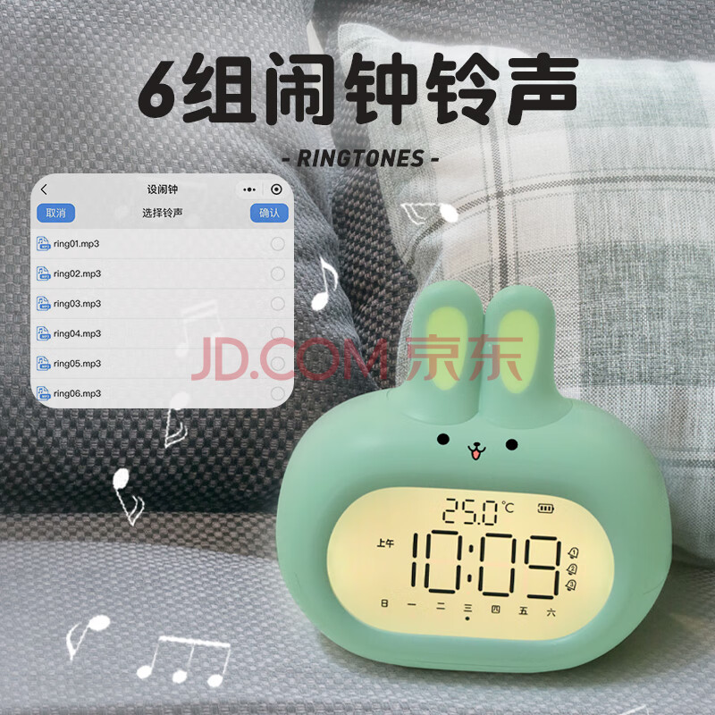 商品相册:康巴丝(Compas)电子闹钟起床神器 儿童节日礼物卡通电子时钟萌兔闹钟 薄荷绿开学季第