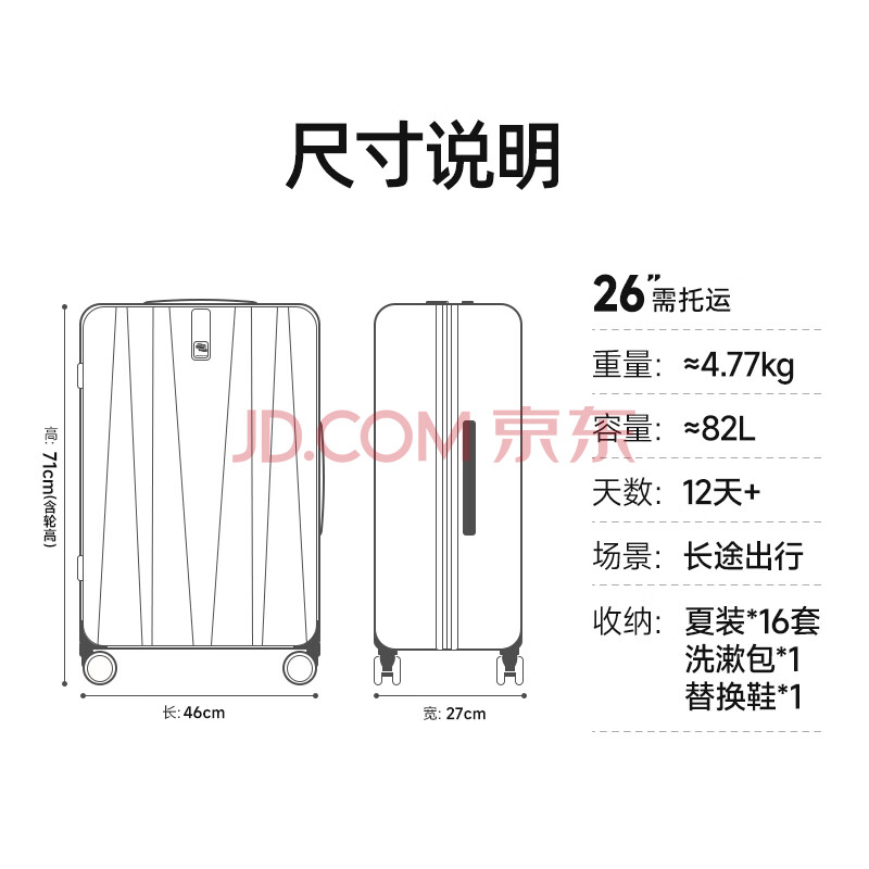 商品相册:汉客行李箱男拉杆箱女大容量双层拉链密码旅行箱26英寸墨绿81升巨能装第