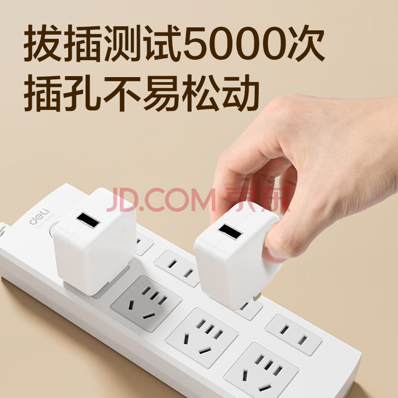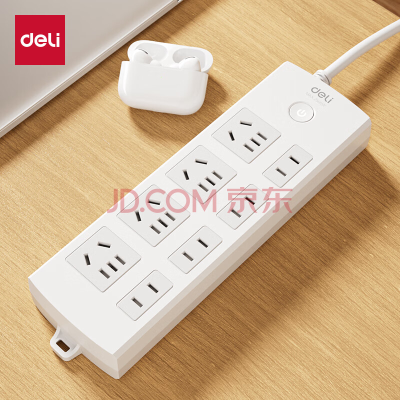 商品相册:得力(deli)3C认证国标安全插座 插排/插线板/接线板/排插/拖线板 总控开关 儿童保护门 8位5米 白色 18214第