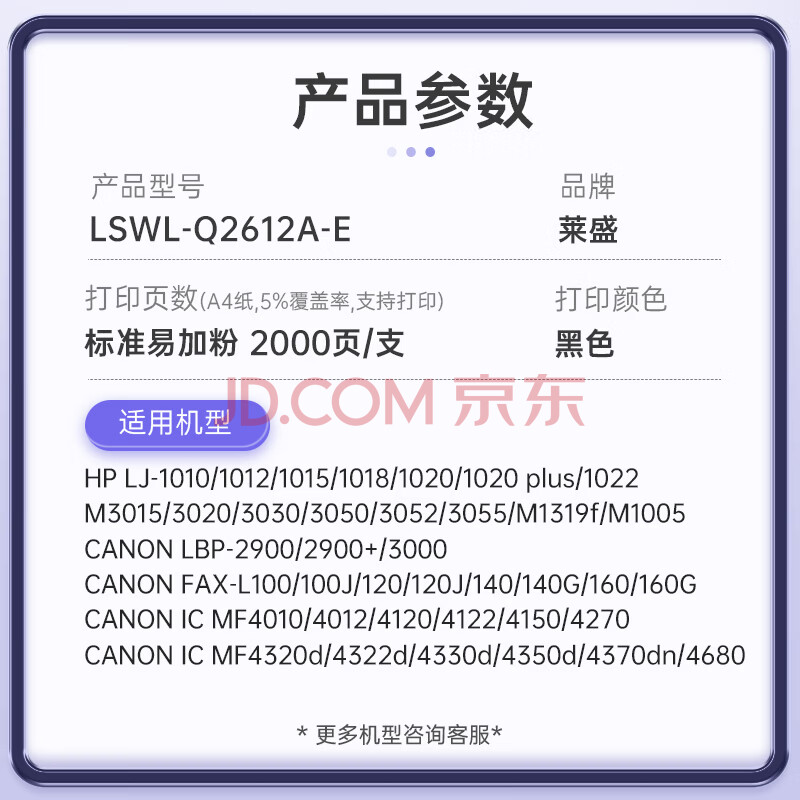 商品相册:莱盛Q2612A易加粉硒鼓 适用惠普1010 1012 1015 1018 1020 1020 plus M1005 佳能LBP-2900 2900+粉盒第