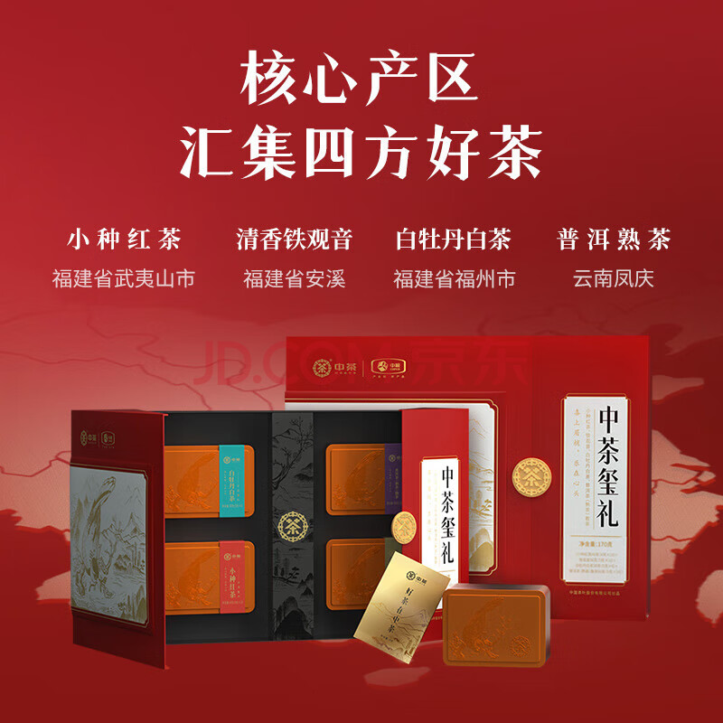 商品相册:中茶茶叶礼盒小种红茶白牡丹乌龙茶铁观音普洱玺礼组合180g第
